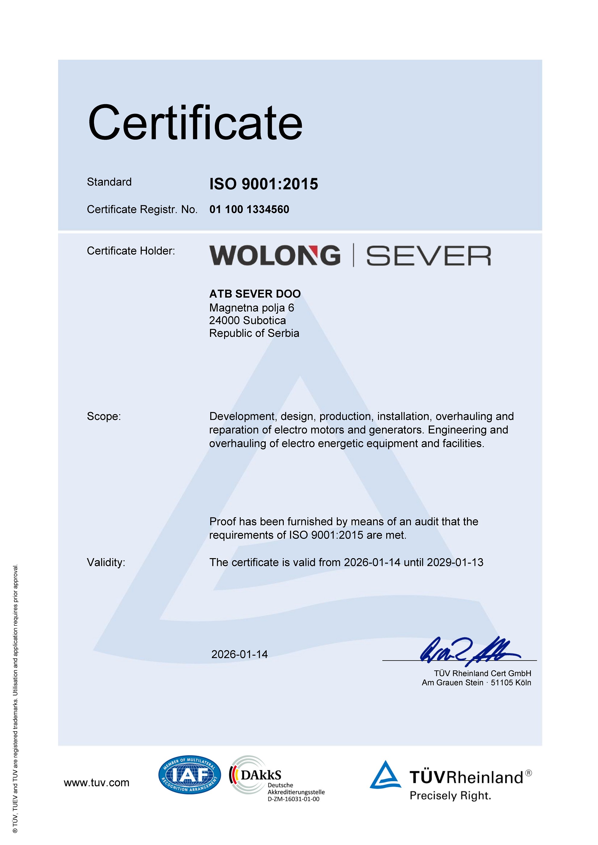ATB SEVER Main Certificate QMS